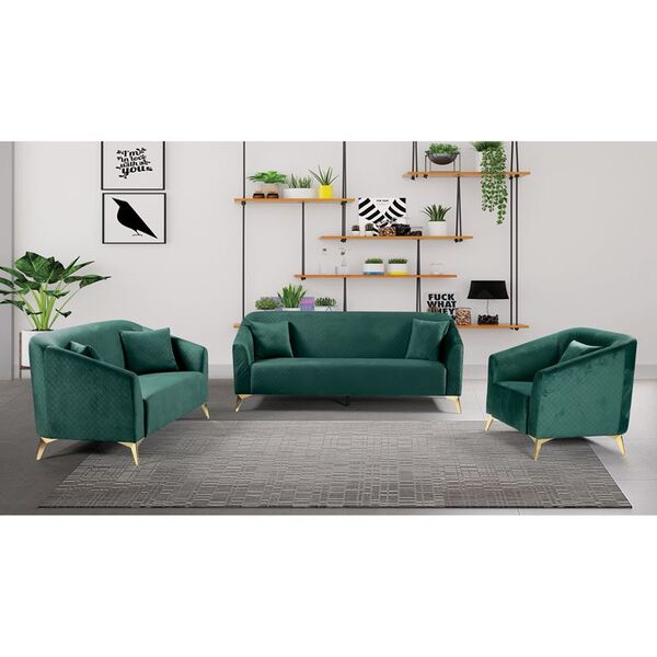 LUXE Set Σαλόνι : 3Θέσιος + 2Θέσιος + Πολυθρόνα, Ύφασμα Velure Απόχρωση Πράσινο-Ε9634,1S-Ύφασμα-1τμχ- 199x77x82-143x77x82-87x77x82cm