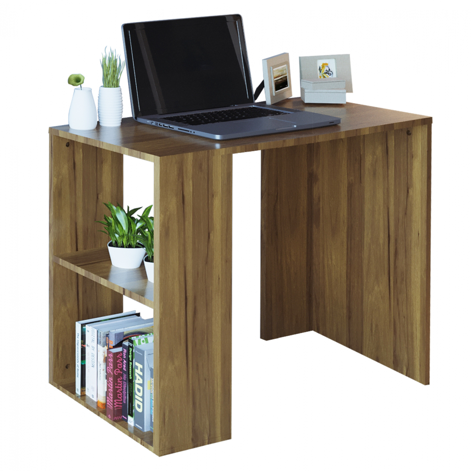 Γραφείο με ραφιέρα, σε καρυδί απόχρωση. Ευέλικτο και πρακτικό το γραφείο, προσφέρεται σε μοντέρνο χρωματισμό που θα αναδείξει την αισθητική του χώρου σας. Ευφάνταστη νεανική σύνθεση με γεωμετρικό σχεδιασμό που συνδυάζει μαζί, γραφείο και ραφιέρα. Πέρα από την κύρια επιφάνεια εργασίας, προσφέρει πλαϊνό ράφι στο πόδι για την αποθήκευση βιβλίων, εγγράφων και χρηστικών αντικειμένων. Η καλύτερη πρόταση διακόσμησης για έναν μικρό χώρο. Κατασκευασμένο από υψηλής ποιότητας μελαμίνη, πάχους 18mm, το καθιστά σταθερό και ιδιαίτερα ανθεκτικό. Διαστάσεις γραφείου: 90x40x74Υ εκ. Διαστάσεις ραφιέρας: 22x40x74Υ εκ. Ευρωπαϊκής κατασκευής και προέλευσης. Το προϊόν διατίθεται αμοντάριστο σε εργοστασιακή συσκευασία.