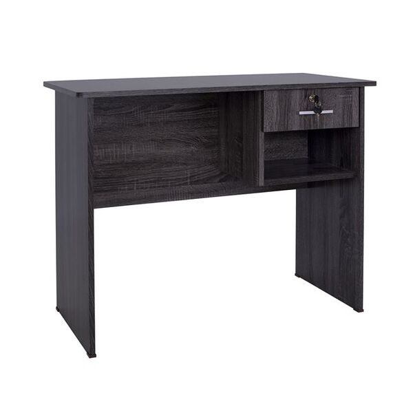 Γραφείο μελαμίνης με κομψό και λιτό σχεδιασμό, κατασκευασμένο από ανθεκτική μελαμίνη σε γκρί νερά απόχρωση, με 1 συρτάρι και ένα ράφι αποθήκευσης. Διαστάσεις:90x45x74,5 Y εκ. Το προϊόν διατίθεται αμοντάριστο σε πακέτο.