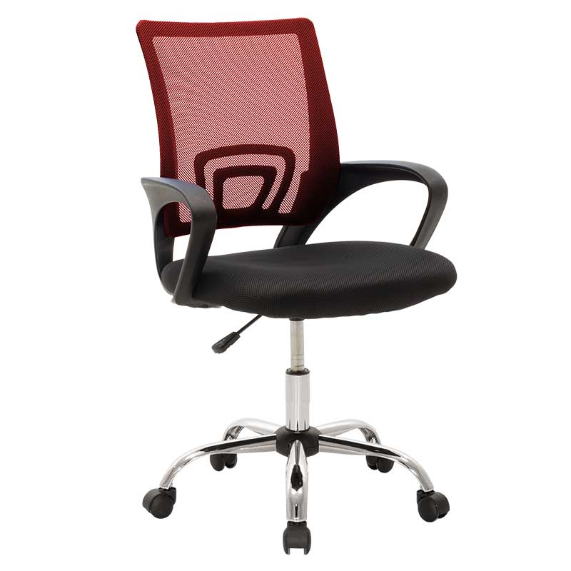 Καρέκλα γραφείου εργασίας Berto με ύφασμα mesh χρώμα μαύρο-κόκκινοΤο κάθισμα Berto είναι για σένα που θέλεις να συνδυάσεις: τον εντυπωσιακό funky σχεδιασμό της εποχής σου και την εργονομία του σήμερα.Επέλεξε το στο χρώμα που σε εξιτάρει και θα γίνει το αγαπημένο σου gadget για το διάβασμα και το παιχνίδι.Τεχνικές προδιαγραφές:* Μηχανισμός Tilt / Ανακλινόμενη πλάτη: Το κάθισμα ακολουθεί την κλίση του σώματος μπρος – πίσω, προσφέροντας πλήρη ελευθερία κινήσεων, αλλά και εργονομική στήριξη της μέσης και της σπονδυλικής στήλης.* Ρυθμιζόμενο ύψος: Δυνατότητα να προσαρμόζεται και να “κλειδώνει” το κάθισμα στη κατάλληλη εργονομική θέση, ανάλογα με το ύψος του χρήστη. Σύμφωνα με την ορθή εργονομία τα πόδια πρέπει να σχηματίζουν ορθή γωνία 90 μοιρών με το πάτωμα.* Ανθεκτικός σκελετός: Με έδραση σε 5ντακτινωτή μεταλλική τροχήλατη βάση υψηλών αντοχών 280χιλ χρωμίου.* Φέρει μεσαία τετράγωνη πλάτη που στηρίζει την σπονδυλική στήλη.* Η πλάτη επενδύεται με ειδικό ανθεκτικό διάτρητο δίχτυ/ύφασμα και η έδρα με ύφασμα Mesh που επιτρέπει την κυκλοφορία του αέρα και αποτρέπει την εφίδρωση του σώματος, προσφέρεται σε μαύρο-κόκκινο χρώμα.* Τα μπράτσα που ακολουθούν την καμπυλότητα των χεριών για μεγαλύτερη ξεκούραση.* Ενισχυμένη μπουκάλα στήριξης επιπέδου class 3Πολυθρόνα γραφείου Berto και βάλε χρώμα στη ζωή σου.Διάσταση προϊόντος:Μήκος: 58εκ.Πλάτος: 53εκ.Ύψος: 90-110εκ.Ύψος έδρας: 46-56 εκΠαρατηρήσεις:Το προϊόν παραδίδεται αμοντάριστο, σε εργοστασιακή συσκευασία και με αναλυτικό οδηγό συναρμολόγησης. Η χρωματική απόχρωση του προϊόντος ενδέχεται να διαφέρει ελαφρώς σε σχέση με την φωτογραφική απεικόνισή του στην οθόνη σας