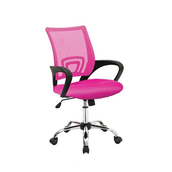 A1850 πολυθρόνα γραφείου με ιδιαίτερο σχεδιασμό στην πλάτη και ιδιαίτερα στρογγυλεμένα μπράτσα. Η πλάτη είναι ενδεδυμένη με ροζ mesh ύφασμα για να αναπνέει το σώμα, με ρυθμιζόμενο ύψος και με πόδι χρωμίου για απόλυτη αντοχή στον χρόνο.