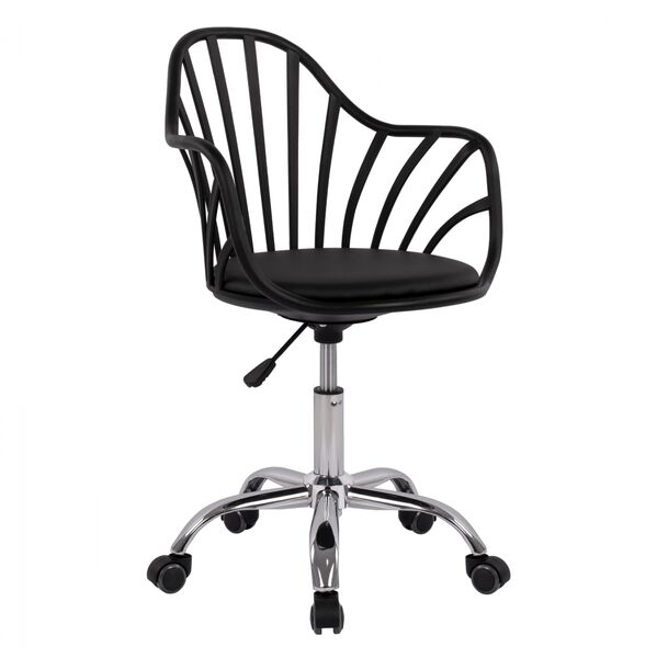 Καρέκλα γραφείου σε έναν άψογο συνδυασμό inox και μαύρου πολυπροπυλενίου για να αναδείξει κάθε γωνία του σπιτιού σας ή του επαγγελματικού σας χώρου. Επίσης διαθέτει πόδι από χρωμιομένο ατσάλι υψηλής αντοχής. Υψηλό design για εσάς που θέλετε ο χώρος να ξεχωρίζει. Στην καρέκλα γραφείου περνάτε τις περισσότερες ώρες της ημέρας για αυτό πρέπει να είναι άνετη και αναπαυτική. Διαστάσεις: 57x57x96 εκ. Min ύψος: 85 εκ. Max ύψος: 96 εκ. Διαστάσεις καθίσματος: Φ43 εκ. Min ύψος καθίσματος: 48 εκ. Max ύψος καθίσματος: 59 εκ. Min ύψος μπράτσων: 69 εκ. Max ύψος μπράτσων: 80 εκ. Το προϊόν διατίθεται αμοντάριστο σε πακέτο.
