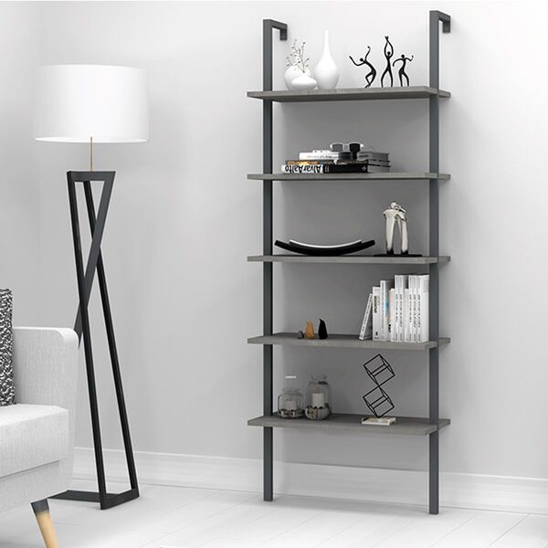 Βιβλιοθήκη τοίχου Smart Megapap μεταλλική - μελαμίνης χρώμα γκρι - ανθρακί 70x30x180εκ.