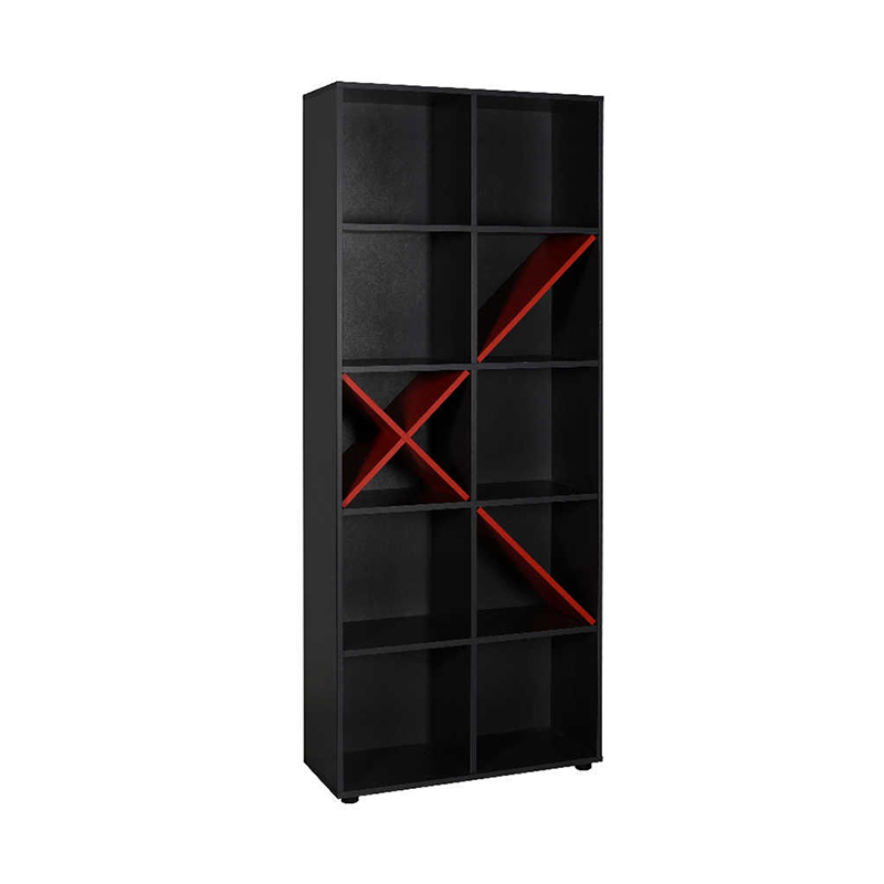 Βιβλιοθήκη Gaming Megapap σε χρώμα ανθρακί - κόκκινο 75x30x188εκ.