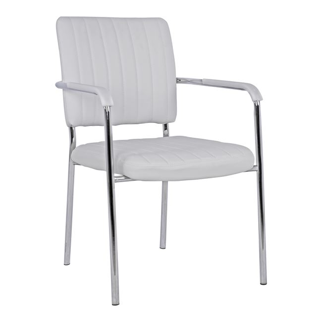 Καρέκλα επισκέπτου με μπράτσα, από λευκό PU και σκελετό από χρωμιωμένο ατσάλι για ύψιστη ασφάλεια, σταθερότητα και αντοχή. Ιδιαίτερα πρακτική για γραφεία και συνεδριακούς χώρους. Διαλέξτε μέσα από μια μεγάλη ποικιλία την καρέκλα συνεργασίας που επιθυμείτε. Χρώμα: Λευκό Διαστάσεις: 56,5x59x85 εκ. Ύψος καθίσματος: 42 εκ. Ύψος μπράτσων: 63,5 εκ.