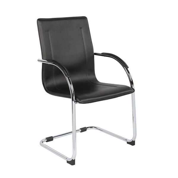 OMIKRON Πολυθρόνα Γραφείου Επισκέπτη, Μέταλλο Χρώμιο PVC Μαύρο-ΕΟ558,10-PU - PVC - Bonded Leather-4τμχ- 58x63x94cm
