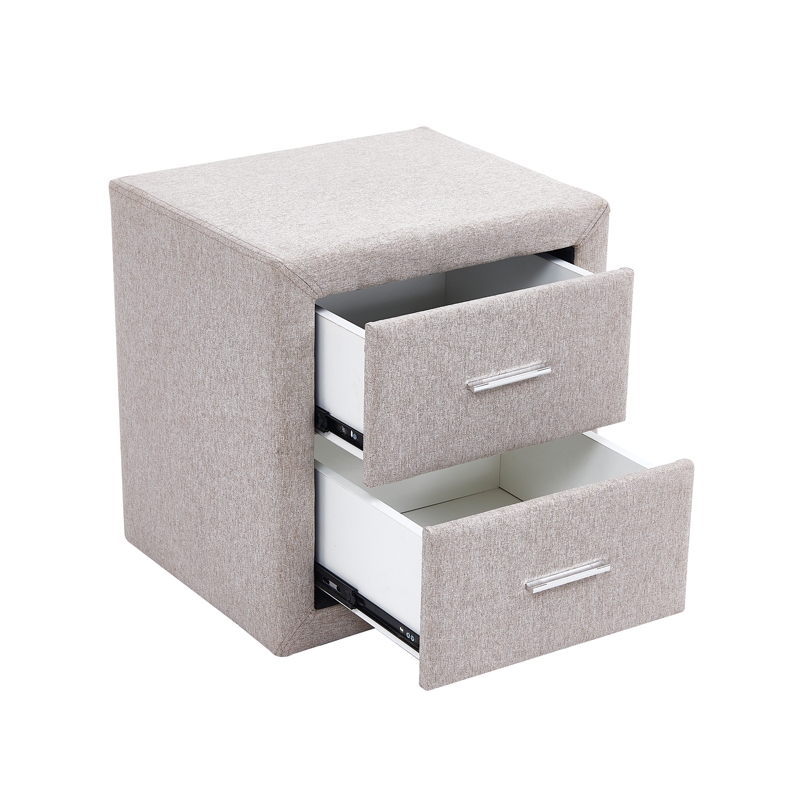 Κομοδίνο με επένδυση από υψηλής ποιότητας ύφασμα σε χρώμα beige.Το ξεχωριστό του design προσδίδει μια μοναδική φινέτσα στην κρεβατοκάμαρα σας.