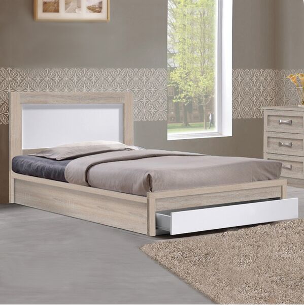 Είναι πολύ σημαντικό να ξεκινάμε την ημέρα με υπέροχη διάθεση. Και αυτό το πετυχαίνουμε ξυπνώντας σε ένα φανταστικό κρεβάτι. Κρεβάτι μονό από μελαμίνη αρίστης ποιότητας και κατασκευής σε sonama χρώμα και κεφαλάρι άσπρο. Το κρεβάτι διαθέτει 1 συρτάρι στη βάση του άσπρου χρώματος. Στη συσκευασία συμπεριλαμβάνονται και οι τάβλες στήριξης του στρώματος. Διάσταση στρώματος:90χ190εκ. Εξωτερικές διαστάσεις: 196Χ98χ92,5 εκ Διαστάσεις συρταριού:81x42,5x7,5 εκ Παρατηρήσεις 1)Το κρεβάτι διατίθεται σε πακέτο αμοντάριστο με αναλυτικές οδηγίες συναρμολόγησης.
