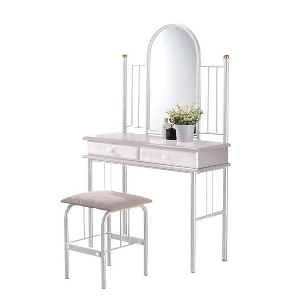 FLORA SET Τουαλέτα με Καθρέπτη + Σκαμπό 2 Συρτάρια, Μέταλλο Βαφή Άσπρο, Ξύλο Άσπρο-Ε8028,1-Μέταλλο/Ξύλο-1τμχ- 90x37x148cm - Stool:40x34x47cm