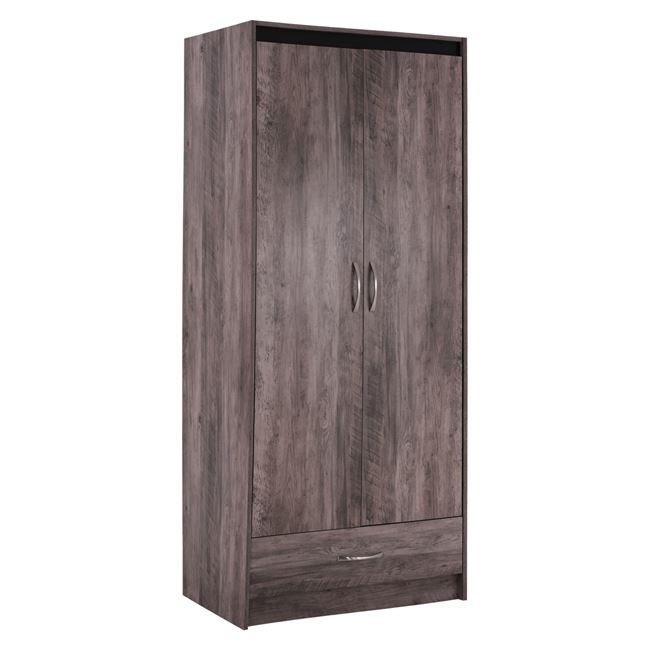 Ντουλάπα μελαμίνης δίφυλλη σε χρώμα σταχτί. Στο εσωτερικό της ντουλάπας υπάρχει μεταλλικό δοκάρι ειδικά κατασκευασμένο για κρέμαση ρούχων και στο κάτω μέρος υπάρχει 1 μεγάλo συρτάρι για αποθήκευση ρούχων. Διαστάσεις: 80x53x190,5Υ εκ. Παρατηρήσεις Η ντουλάπα διατίθεται σε πακέτο αμοντάριστη με αναλυτικές οδηγίες συναρμολόγησης.