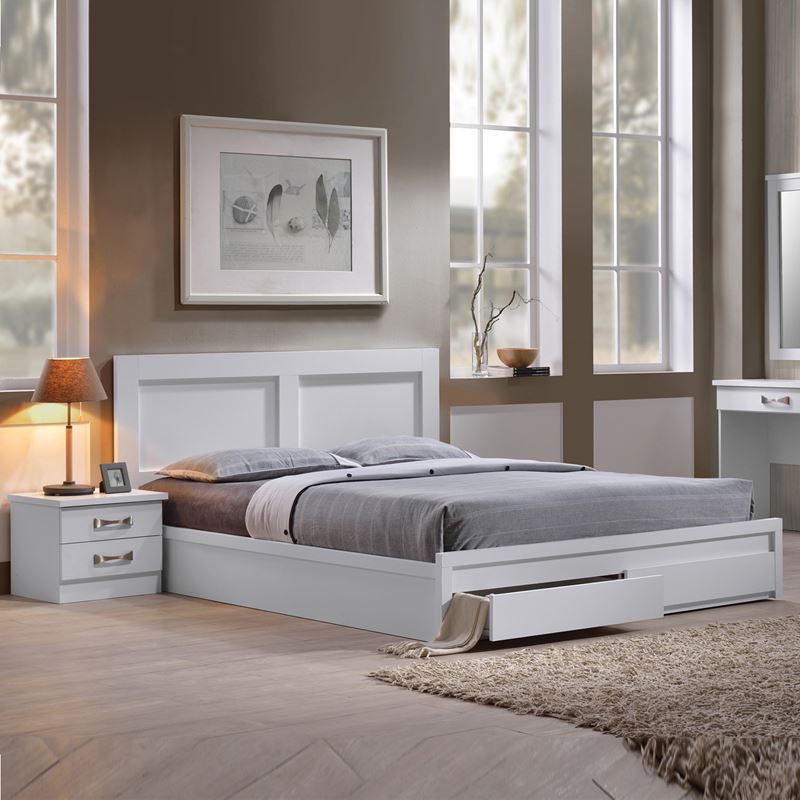 LIFE Κρεβάτι Διπλό, 2 Συρτάρια, για Στρώμα 140x190 cm, Απόχρωση Άσπρο-ΕΜ3636,1-Paper-1τμχ- 149x196x93cm