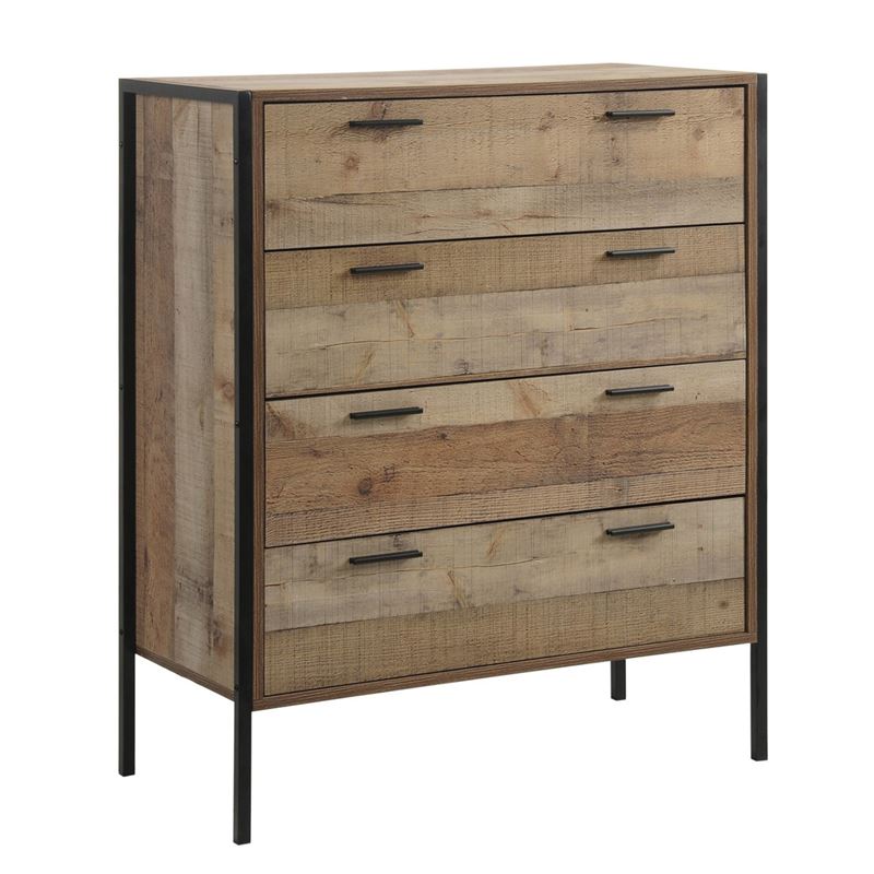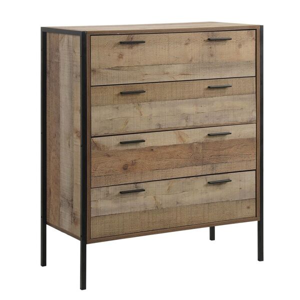 PALLET Συρταριέρα με 4 Συρτάρια Μέταλλο Βαφή Μαύρο - Antique Oak-Ε8435-Μέταλλο/Paper-1τμχ- 84x40x100cm