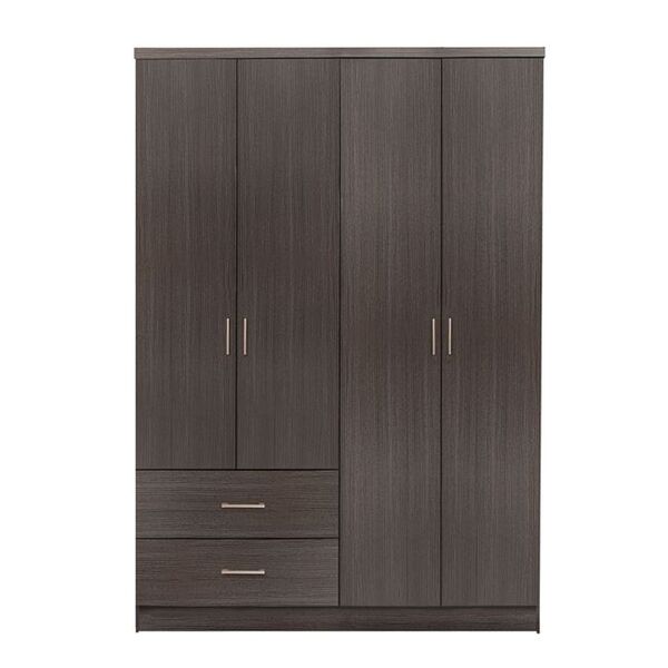 Ντουλάπα μελαμίνης τετράφυλλη σε χρώμα Zebrano. Στο εσωτερικό της ντουλάπας υπάρχει μεταλλικό δοκάρι ειδικά κατασκευασμένο για κρέμαση ρούχων και στο κάτω μέρος υπάρχουν 2 μεγάλα συρτάρια για αποθήκευση ρούχων. Στα άλλα 2 φύλλα υπάρχουν 4 χώροι αποθήκευσης. Διαστάσεις: 120x42x181 εκ. Παρατηρήσεις Η ντουλάπα διατίθεται σε πακέτο αμοντάριστη με αναλυτικές οδηγίες συναρμολόγησης.