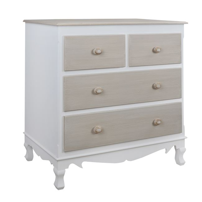 Συρταριέρα MELODY σε λευκό και γκρί χρώμα. Επιλέξτε μια άνετη συρταριέρα που χωράει πολλά πράγματα και δίνει ιδιαίτερο στιλ στο υπνοδωμάτιο. Μπορείτε να την διακοσμήσετε με βάζα, κεριά, κορνίζες με φωτογραφίες, μπουκαλάκια αρωμάτων και ό,τι άλλο σας αρέσει. Ανανεώστε τον υπνοδωμάτιό σας δίνοντας μια νότα από το παρελθόν αλλά με την αισθητική του μοντέρνου και υιοθετήστε ένα διαχρονικό έπιπλο στον χώρο σας που θα εντυπωσιάσει και τους πιο δύσκολους. Συνδυάστε το με ένα ξύλινο καθρέπτη στο ίδιο χρώμα και ύφος ή πολύ απλά με έναν όμορφο πίνακα ζωγραφικής κάνοντάς το έτσι πιο μοντέρνο.