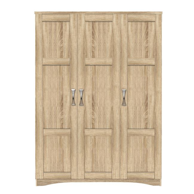 Ντουλάπα μελαμίνης τρίφυλλη σε χρώμα SONAMA. Στο εσωτερικό της ντουλάπας υπάρχει μεταλικό δοκάρι ειδικά κατασκευασμενο για κρέμαση ρούχων και στο κάτω μέρος υπάρχουν 2 μεγάλα εσωτερκά συρτάρια για αποθήκευση ρούχων. Στο μονό φύλλο υπάρχουν 4 χώροι αποθήκευσης. Διαστάσεις ντουλάπας:120X53X185εκ Παρατηρησεις: 1)Η ντουλάπα διατίθεται σε πακέτο αμοντάριστη με αναλυτικές οδηγίες συναρμολόγησης.