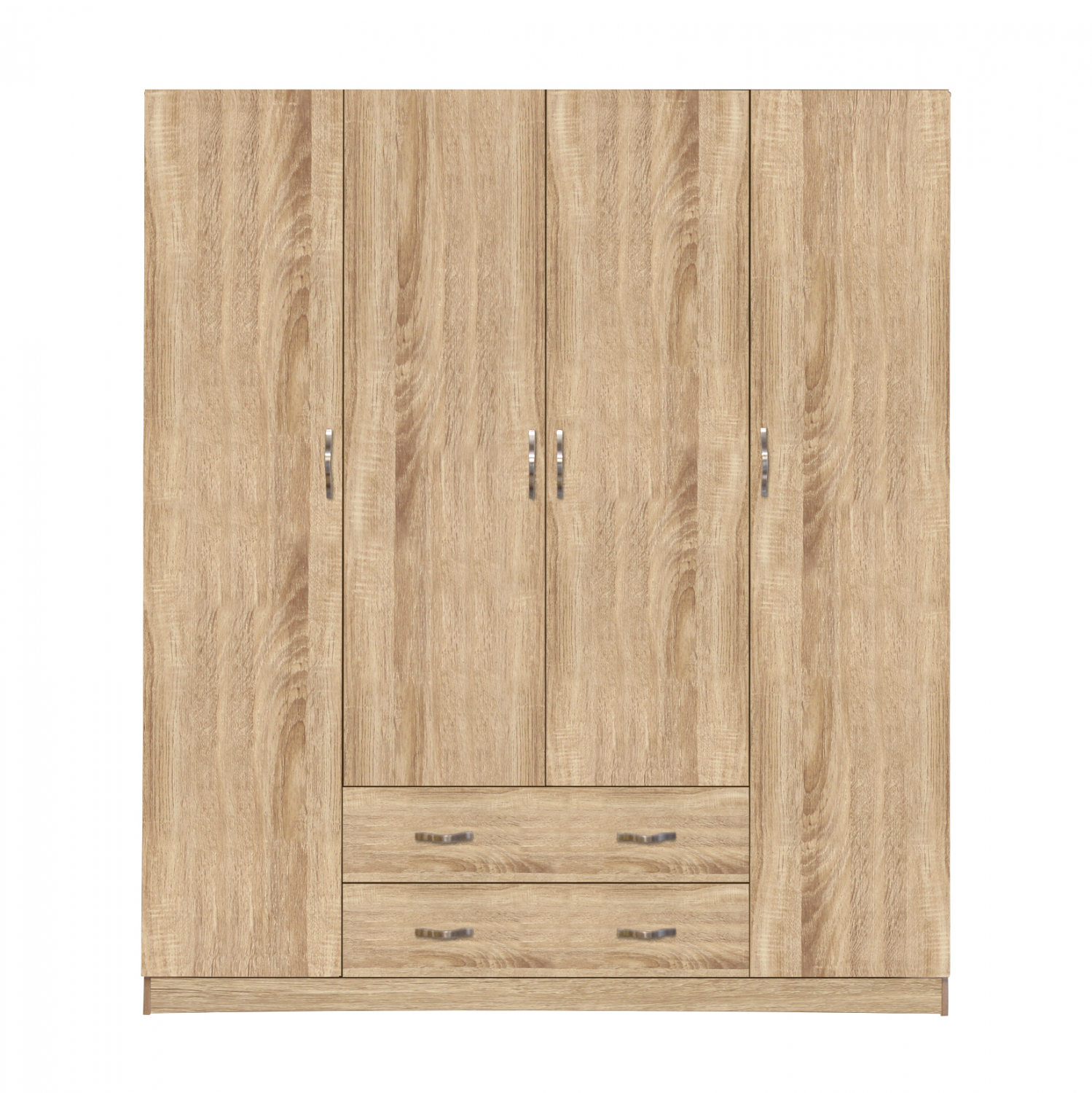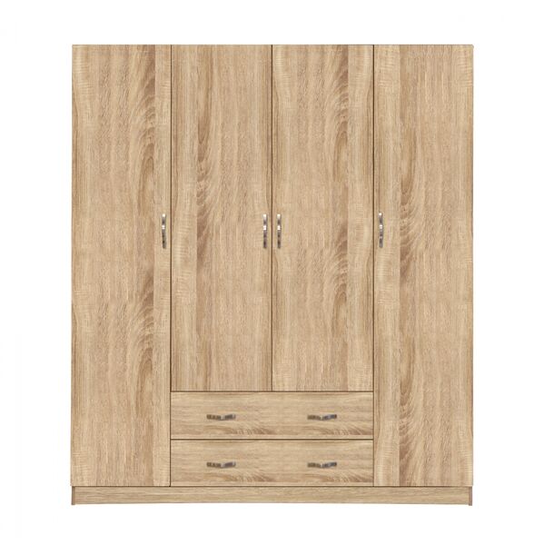 Ντουλάπα μελαμίνης τετράφυλλη σε χρώμα Sonama. Στο εσωτερικό της ντουλάπας υπάρχει μεταλικό δοκάρι ειδικά κατασκευασμενο για κρέμαση ρούχων και στο κάτω μέρος υπάρχουν 2 μεγάλα συρτάρια για αποθήκευση ρούχων. Στα άλλα 2 φύλλα υπάρχουν 4 μεγάλοι χώροι αποθήκευσης. Διαστάσεις ντουλάπας: 200x55,5x180 εκ. Παρατηρησεις: 1)Η ντουλάπα διατίθεται σε πακέτο αμοντάριστη με αναλυτικές οδηγίες συναρμολόγησης.