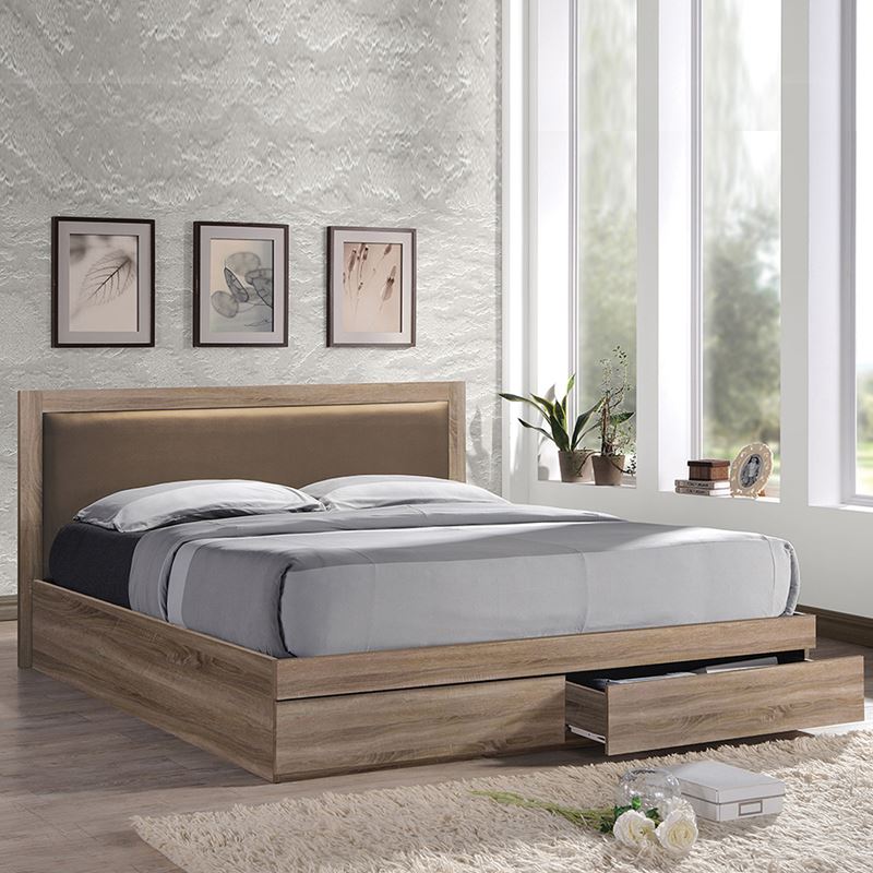 LIFE Κρεβάτι Διπλό Sonoma με 2 Συρτάρια για Στρώμα 160x200cm, Κεφαλάρι Pvc Cappuccino-ΕΜ371,2-Paper-1τμχ- 171x207x92cm