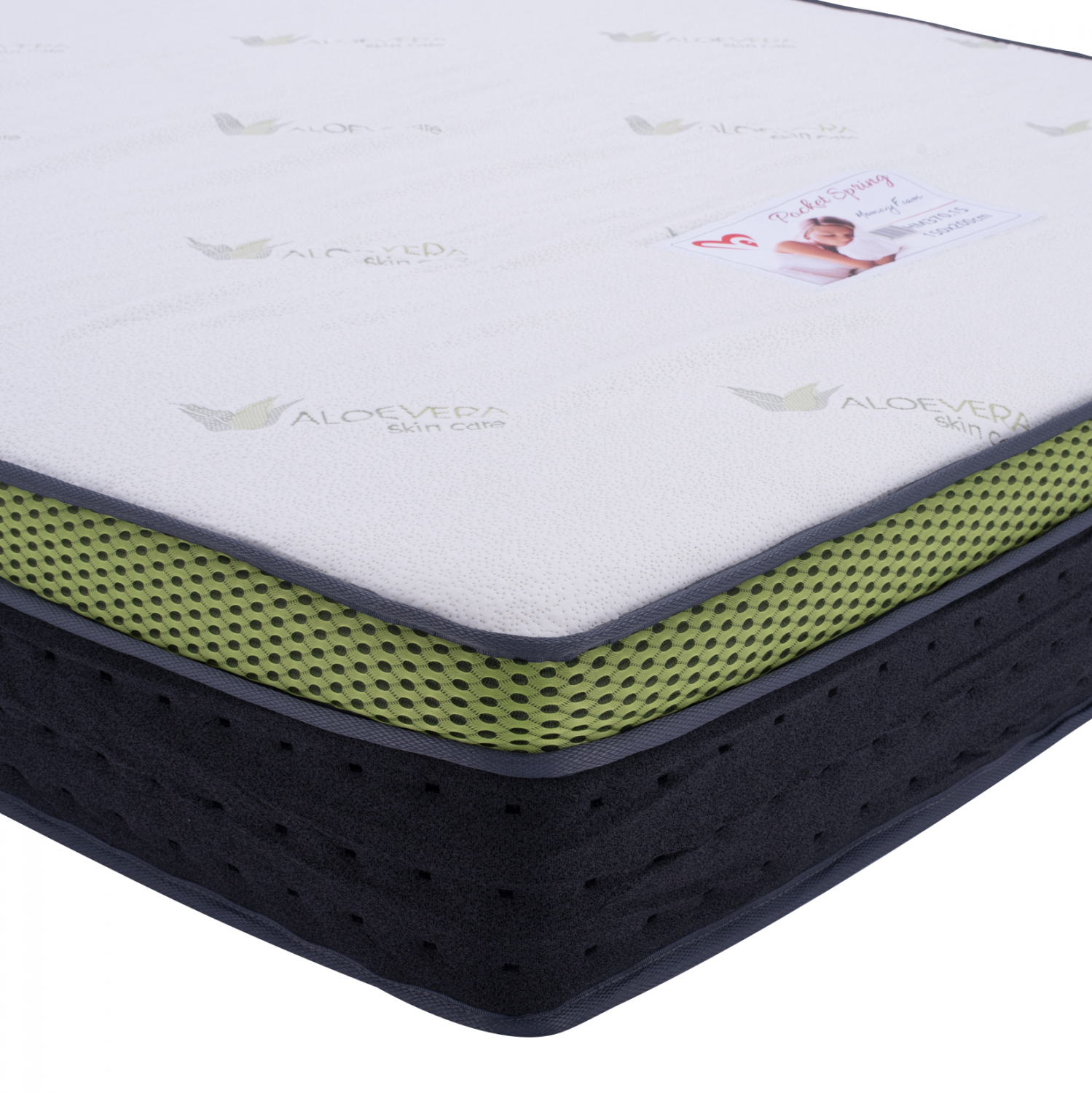 Στρώμα ALOE VERA Pocket Spring, με Ανώστρωμα 8 εκατοστών και Memory Foam μονής όψης. Μεταφέρεται εύκολα στο σπίτι, καθώς το στρώμα είναι σε συσκευασία ρολού. Το στρώμα ανακτά το πλήρες σχήμα και την άνεσή του μετά από περίπου 48 ώρες. Τα στρώματα με Memory Foam αγκαλιάζουν το σώμα παρέχοντας την αναγκαία υποστήριξη, προωθώντας την σωστή κυκλοφορία του αίματος και την ευθυγράμμιση της σπονδυλικής στήλης, ανακουφίζοντας από τα επώδυνα σημεία την πίεση. Το ύφασμα αποτελείτε από ίνες Aloe Vera, όπου σημαίνει ότι είναι αντιβακτηριακό και απομακρύνει τη σκόνη και τα ακάρεα. Τα στρώματα με ανεξάρτητα ελατήρια αποτελούν την πιο σύγχρονη τεχνολογία στο χώρο των στρωμάτων. Τα ανεξάρτητα ελατήρια λειτουργούν μεμονωμένα το ένα από το άλλο δίνοντας περισσότερη ελευθερία κατά τη διάρκεια του ύπνου. Με αυτή τη λειτουργία δεν ενοχλείται το άτομο που κοιμάται δίπλα σας. Κάθε φορά που κινήστε τα ανεξάρτητα ελατήρια υπακούουν στις κινήσεις σας και κινούνται μαζί σας. Κάθε ελατήριο αντιδρά ανεξάρτητα ανάλ