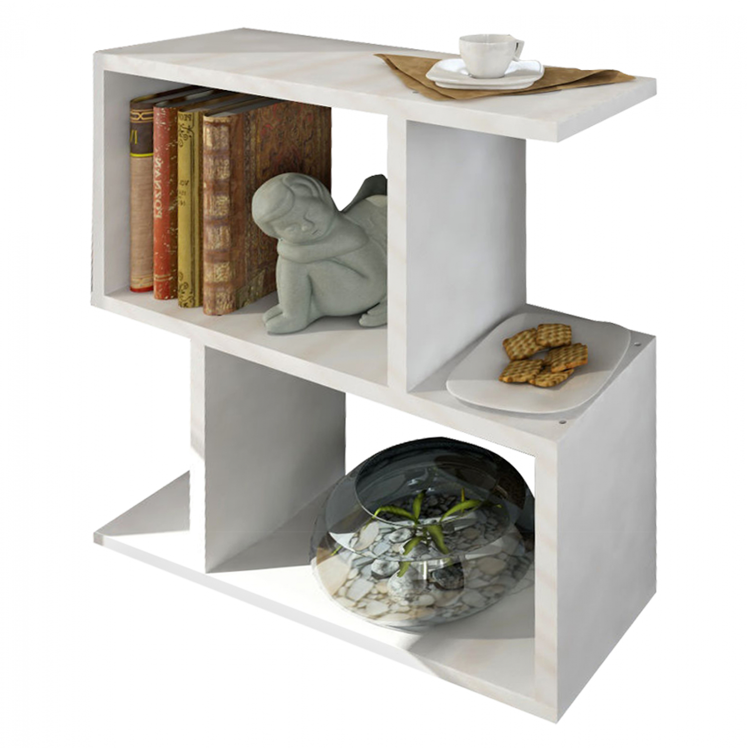 Βοηθητικό τραπέζι σαλονιού από μελαμίνη πάχους 18 χιλιοστών υψηλής ποιότητας, σε λευκό χρώμα. Διακρίνεται για το εντυπωσιακό και μοντέρνο σχεδιασμό καθώς και την εξαιρετική του ποιότητα. Ένα έπιπλο με μεγάλη ανθεκτικότητα και λειτουργικότητα, ιδανικό για το σπίτι ή το γραφείο. Μπορεί να χρησιμοποιηθεί και ως ραφιέρα καθώς διαθέτει χώρους αποθήκευσης μικροαντικειμένων. Απολαύστε την όμορφη ατμόσφαιρα του χώρου σας, στολίζοντας με μικρά έργα τέχνης το σαλόνι σας ή τον επαγγελματικό σας χώρο. Διαστάσεις: 50x17,5x55,4 εκ. Ευρωπαϊκής κατασκευής και προέλευσης. Το προϊόν διατίθεται αμοντάριστο σε εργοστασιακή συσκευασία.