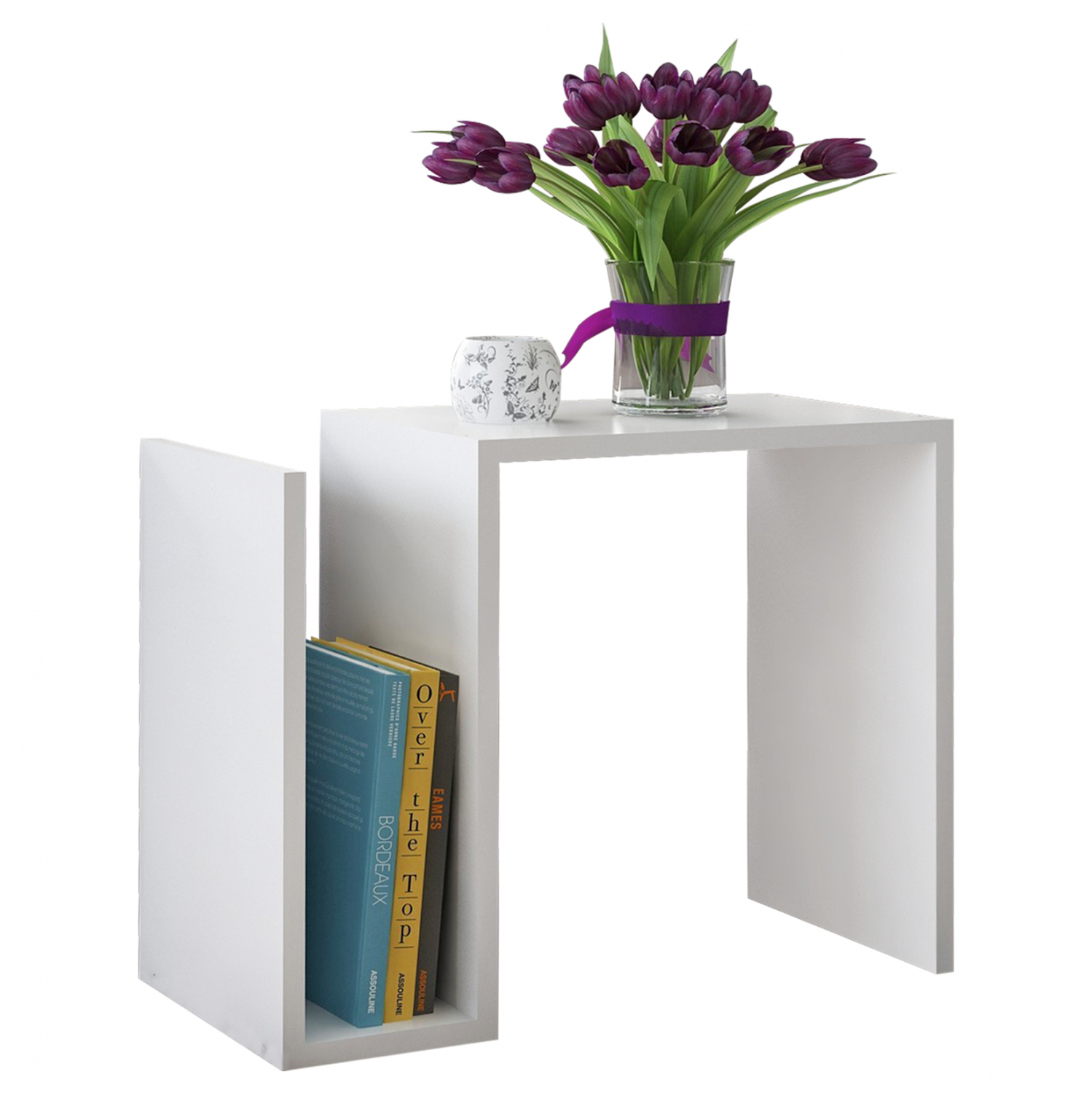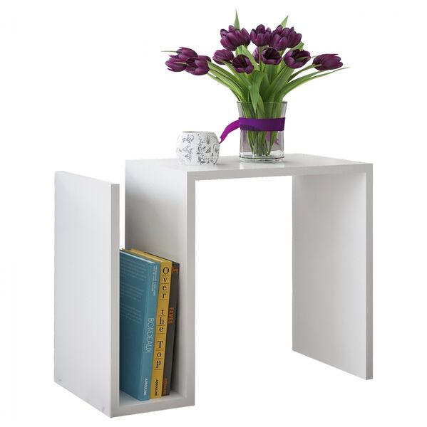 Βοηθητικό τραπέζι σαλονιού από μελαμίνη πάχους 18 χιλιοστών υψηλής ποιότητας, σε λευκό χρώμα. Διακρίνεται για το εντυπωσιακό και μοντέρνο σχεδιασμό καθώς και την εξαιρετική του ποιότητα. Ένα έπιπλο με μεγάλη ανθεκτικότητα και λειτουργικότητα, ιδανικό για το σπίτι ή το γραφείο. Μπορεί να χρησιμοποιηθεί και ως ραφιέρα καθώς διαθέτει χώρους αποθήκευσης μικροαντικειμένων. Απολαύστε την όμορφη ατμόσφαιρα του χώρου σας, στολίζοντας με μικρά έργα τέχνης το σαλόνι σας ή τον επαγγελματικό σας χώρο. Διαστάσεις: 61,3x29,5x46,8 εκ. Ευρωπαϊκής κατασκευής και προέλευσης. Το προϊόν διατίθεται αμοντάριστο σε εργοστασιακή συσκευασία.