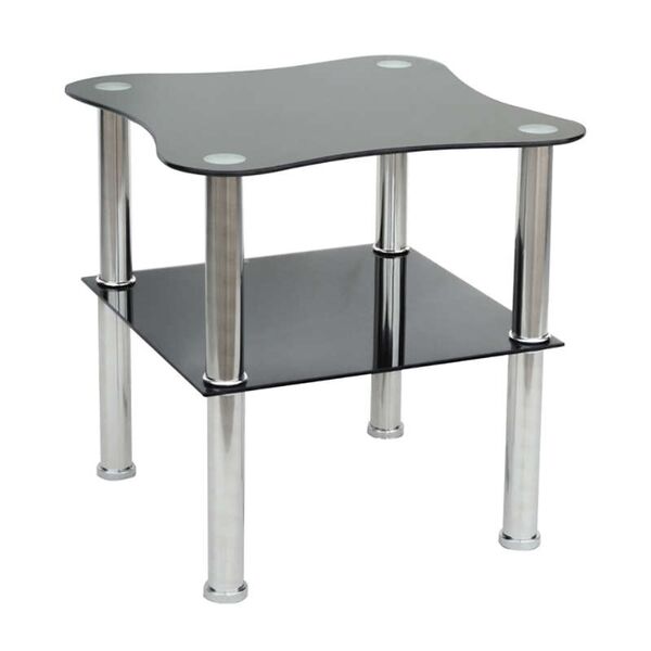 Malta βοηθητικό τραπεζάκι με σκελετό χρωμίου.Με ένα γυαλί ασφαλείας σε μαύρο χρώμα και ένα δέυτερο σε μαύρη αμμοβολή για περισσότερη αποθήκευση.Κατάλληλο για μικρούς χώρους.