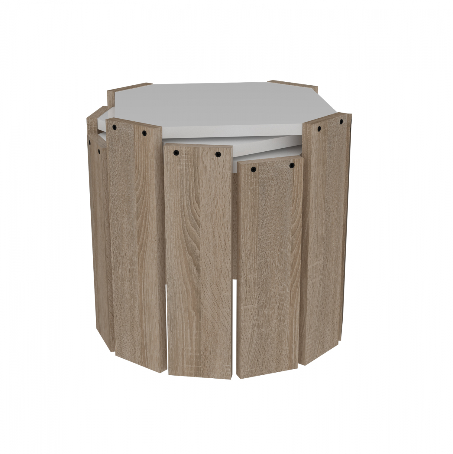 Τραπεζάκια ζιγκόν Hansel, 3 τεμαχίων, με πόδια σε sonama και επιφάνεια σε λευκή απόχρωση. Κατασκευασμένα από μελαμίνη πάχους 18mm υψηλής ποιότητας, με αντοχή στην καταπόνηση, την φθορά και τον χρόνο. Πρακτικά,νεανικά και μοντέρνα σε στυλ με δυνατότητα αποθήκευσης του ενός μέσα στο άλλο όταν δεν χρησιμοποιούνται. Καταλαμβάνοντας τον λιγότερο δυνατό χώρο. Χρώμα: Sonama - Λευκό Διαστάσεις: Μεγάλο: 44,5x44,5x41 εκ. Μεσαίο: 44,5x44,5x38,5 εκ. Μικρό: 44,5x44,5x36 εκ. Ευρωπαϊκής κατασκευής και προέλευσης. Το προϊόν διατίθεται αμοντάριστο σε εργοστασιακή συσκευασία.