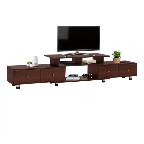 Έπιπλο τηλεόρασης, κατασκευασμένο από μελαμίνη σε καρυδί απόχρωση. Το έπιπλο διαθέτει 4 συρτάρια και 3 ανοιχτούς αποθηκευτικούς χώρους. Ο μοντέρνος και λιτός σχεδιασμός, είναι κάποια από τα χαρακτηριστικά που ζητάς για να απογειώσεις την αισθητική του χώρου σου, προσφέροντας παράλληλα και πρακτικότητα. Διαστάσεις: 217,5x26-30x26-39 εκ. Διαστάσεις ραφιού: 100x30x13 εκ. Μονάδα συρταριών: 68,5x26x26 εκ. Αποθηκευτικοί χώροι (A): 37,5x26x9,5 εκ. (x2) Αποθηκευτικός χώρος (B): 57x26x20 εκ. Διαστάσεις συρταριών: 34x23x15 εκ. (x4) Ύψος ποδιών: 5-6,5 εκ. Παρατηρήσεις Οι διαστάσεις του προϊόντος μπορούν να προσαρμοστούν ανάλογα με το χώρο σας, καθώς το έπιπλο είναι επεκτεινόμενο, με διαστάσεις από 160 έως 230 εκ. Το προϊόν παραδίδεται αμοντάριστο, σε εργοστασιακή συσκευασία.
