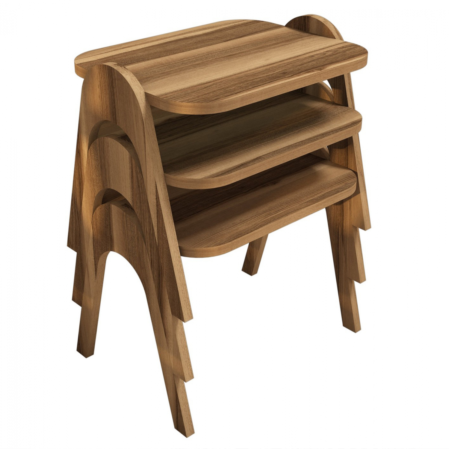 Αν αναζητάτε μια πινελιά ανανέωσης στο καθιστικό ή το υπνοδωμάτιό σας, αλλά δεν θέλετε να ξοδέψετε πολλά χρήματα, επενδύστε σε ένα σετ από βοηθητικά τραπεζάκια 3 τεμαχίων. Κατασκευασμένα από μελαμίνη πάχους 18mm υψηλής ποιότητας, με αντοχή στην καταπόνηση, την φθορά και τον χρόνο, σε καρυδί απόχρωση. Οι στενοί χώροι δεν σημαίνει ότι πρέπει να υπολείπονται σε στυλ. Ανανεώστε το χώρο σας δίνοντας μια νότα που θα κλέψει τις εντυπώσεις. Συνολικές διαστάσεις: 48,6x35,5x72Y εκ. Διαστάσεις τραπεζιού: 48,6x35,5x42Y εκ. (x3) Ευρωπαϊκής κατασκευής και προέλευσης. Το προϊόν διατίθεται αμοντάριστο σε εργοστασιακή συσκευασία.
