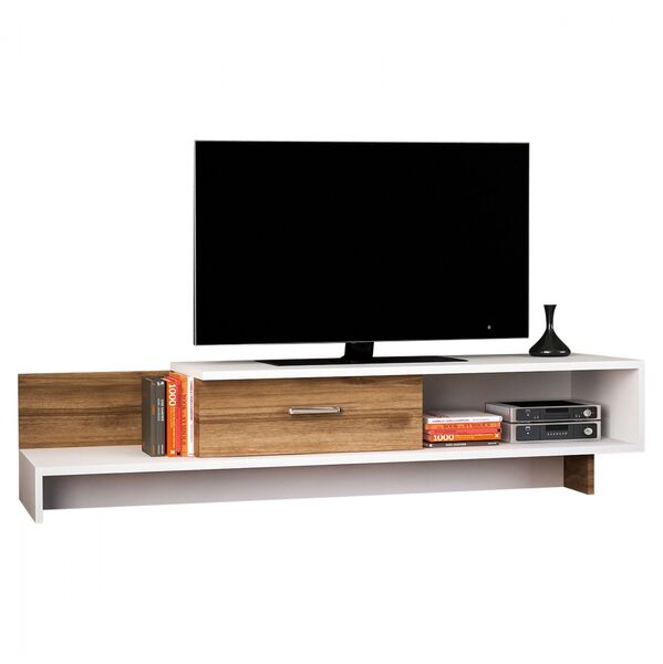 Minimal έπιπλο τηλεόρασης με λιτό σχεδιασμό, κατασκευασμένο από ανθεκτική μελαμίνη πάχους 18 χιλιοστών υψηλής ποιότητας σε καρυδί και λευκή απόχρωση. Διαθέτει ένα ντουλάπι και δύο ανοιχτούς αποθηκευτικούς χώρους. Ανανεώστε τον χώρο σας δίνοντας μια νότα από την αισθητική του μοντέρνου και υιοθετήστε ένα σύγχρονο έπιπλο που ταιριάζει σε κάθε χώρο. Διαστάσεις: 161,8x39x30,6 εκ. Ευρωπαϊκής κατασκευής και προέλευσης. Το προϊόν διατίθεται σε εργοστασιακή συσκευασία.