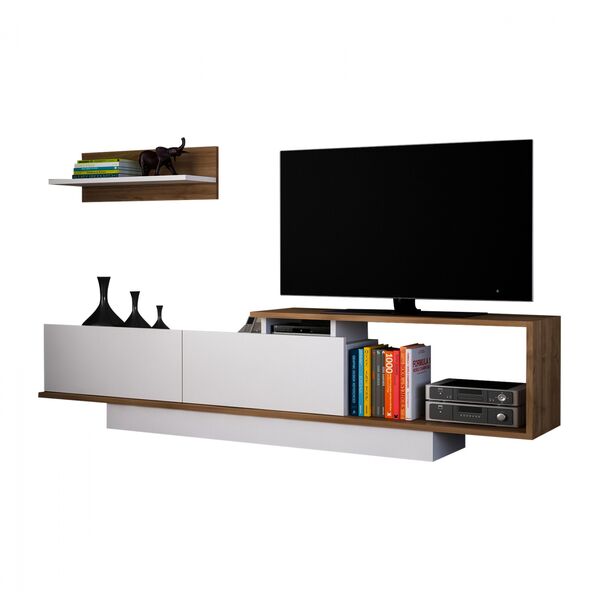 Minimal έπιπλο τηλεόρασης με λιτό σχεδιασμό, κατασκευασμένο από ανθεκτική μελαμίνη πάχους 18 χιλιοστών υψηλής ποιότητας. Ανανεώστε τον χώρο σας δίνοντας την αισθητική του μοντέρνου και υιοθετήστε ένα διαχρονικό έπιπλο στον χώρο σας, που θα εντυπωσιάσει και τους πιο δύσκολους. Διατίθεται σε απόχρωση λευκό με καρυδί. Αποτελείται από δυο αυτόνομα και ξεχωριστά κομμάτια. Η ραφιέρα διαθέτει ένα ράφι. Η μονάδα επίπλου τηλεόρασης διαθέτει δύο ανοιχτούς αποθηκευτικούς χώρους και δυο ντουλάπια για να αποθηκεύετε τα αντικείμενά σας. Διαστάσεις: Ραφιέρα: 60Χ19,6Χ19,6 εκ. Mονάδα επίπλου tv: 180Χ29,6Χ45 εκ. Ευρωπαϊκής κατασκευής και προέλευσης. Το προϊόν διατίθεται αμοντάριστο σε εργοστασιακή συσκευασία.