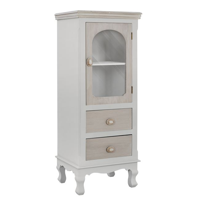 H βιτρίνα MELODY δίνει μια πινελιά ανανέωσης στο καθιστικό σας. Έχει 2 συρτάρια και 2 ράφια. Οι στενοί χώροι δεν σημαίνει ότι πρέπει να υπολείπονται σε στιλ. Ανανεώστε το χώρο σας δίνοντας μια νότα από το παρελθόν αλλά με την αισθητική του μοντέρνου και υιοθετήστε ένα διαχρονικό έπιπλο στον χώρο σας. Χρώμα: Λευκή - Γκρι Πατίνα Διαστάσεις: 40,5x30x100 εκ.
