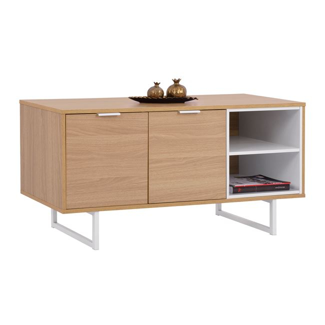 Έπιπλο τηλεόρασης από τη σειρά ANTHEIA, σε φυσική και λευκή απόχρωση με μεταλλικά πόδια. Διαθέτει 2 ντουλάπια, και ένα ράφι με 2 χώρους αποθήκευσης για να τοποθετούνται ηλεκτρονικές συσκευές ή διακοσμητικά. Διαστάσεις: 120x39,5x55,5Y εκ. Διαστάσεις ραφιού: 37x39,5x16,5 εκ. (x2) Διαστάσεις ντουλαπιού: 76,5x39,5x37 εκ. Ύψος ποδιών: 15 εκ. Πάχος ποδιών: 2x2 εκ.