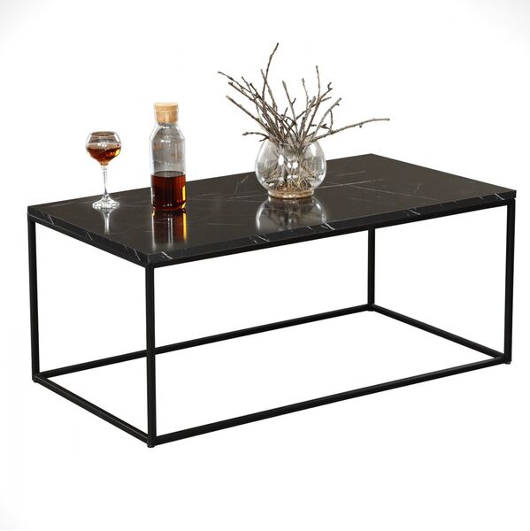 Τραπέζι σαλονιού σε μαύρη απόχρωση με εφέ μάρμαρο. Η κομψότητα και το design, είναι χαρακτηριστικά που καθιστούν το τραπεζάκι αυτό ιδανική επιλογή για το χώρο σου. Κατασκευασμένο απόμελαμίνη υψηλής ποιότητας και μέταλλο. Διαστάσεις: 95Χ55Χ43 εκ. Ευρωπαϊκής κατασκευής και προέλευσης. Το προϊόν διατίθεται αμοντάριστο σε εργοστασιακή συσκευασία.