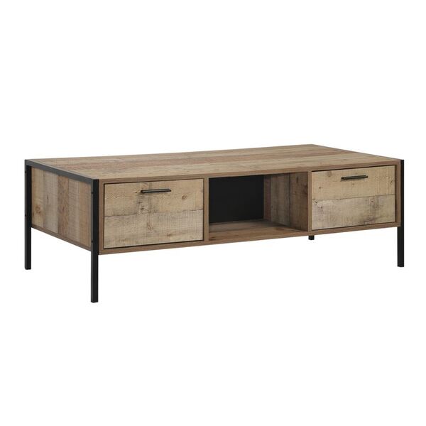 PALLET Τραπεζάκι Σαλονιού με 4 Συρτάρια, Μέταλλο Βαφή Μαύρο - Antique Oak-Ε8436-Μέταλλο/Paper-1τμχ- 124x60x40cm