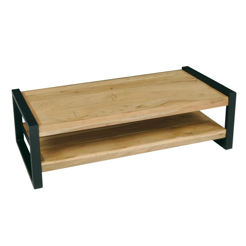VIGOR Τραπεζάκι Σαλονιού Καθιστικού, Μέταλλο Βαφή Μαύρο, Ξύλο Ακακία Φυσικό-ΕΑ7008-Μέταλλο/Ξύλο-1τμχ- 100x45x45cm