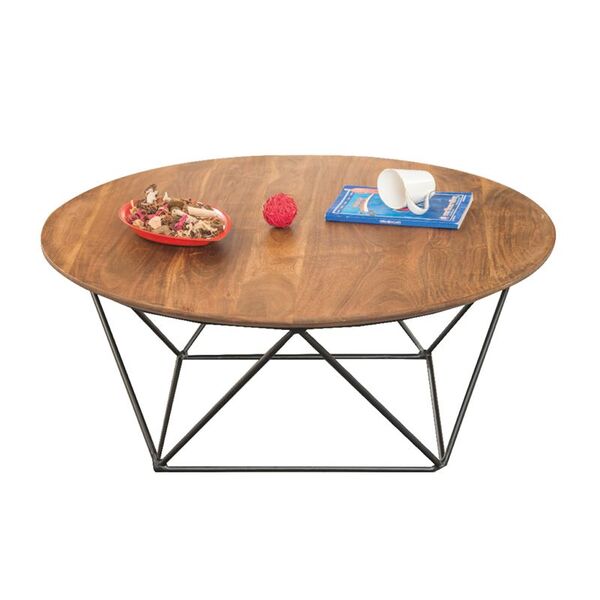 MOVVA Τραπεζάκι Σαλονιού Καθιστικού, Μέταλλο Βαφή Μαύρο, Ξύλο Ακακία Φυσικό-ΕΑ7053-Μέταλλο/Ξύλο-1τμχ- D.90xH.36cm