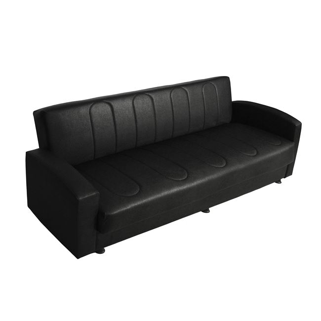 Απολαύστε άνεση και design σε έναν καναπέ κρεβάτι από ξύλινο σκελετό με επένδυση από υψηλής ποιότητας τεχνόδερμα. Επιπλέον διαθέτει αποθηκευτικό χώρο από ενισχυμένο υλικό. Χρώμα: Μαύρο τεχνόδερμα. Τύπος καναπέ: Τριθέσιος Διαστάσεις καναπέ: 220x80x95 εκ. Διαστάσεις κρεβατιού: 190x108x45 εκ. *Το προϊόν ενδείκνυται όχι μόνο για οικιακή χρήση αλλά και για χώρους υποδοχής.