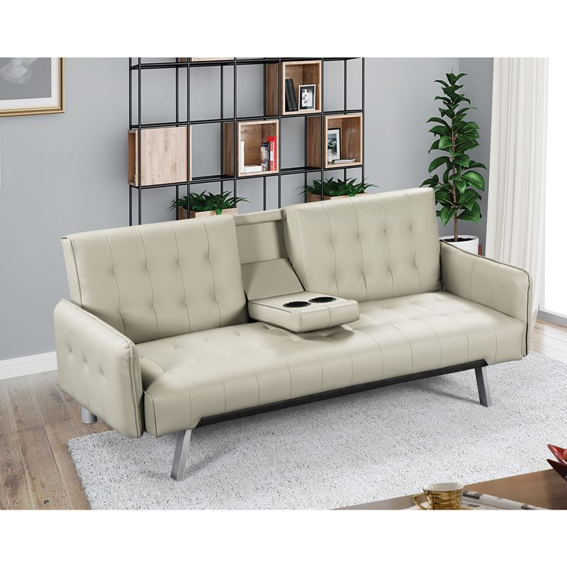 WELLS Καναπές - Κρεβάτι Σαλονιού - Καθιστικού, Pu Μπεζ-Ε9681,3-PU - PVC - Bonded Leather-1τμχ- 188x82x80cm Bed:168x100x36cm