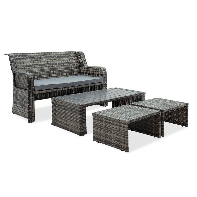Σαλόνι κήπου Nadin pakoworld σετ 4τμχ μέταλλο-pe καφέ-ύφασμα γκρι