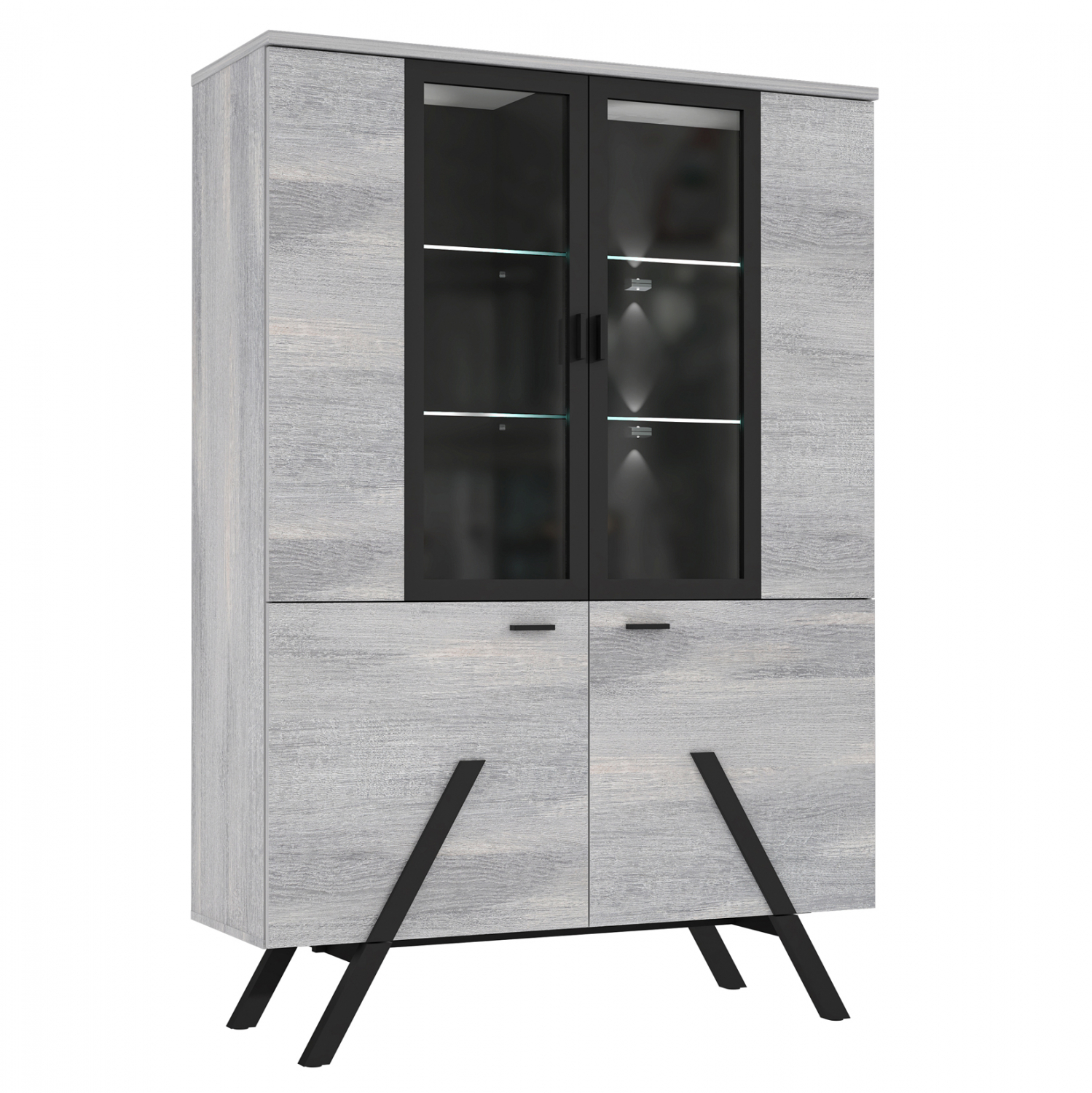 Βιτρίνα με ενσωματωμένο φωτισμό LED, σε μοντέρνο αλλά και λιτό σχεδιασμό, κατασκευασμένο από ανθεκτική μελαμίνη υψηλής ποιότητας, σε όμορφη διχρωμία από σταχτί και μαύρη απόχρωση. Η βιτρίνα διαθέτει 2 ντουλάπια με εσωτερικά ράφια όπου δημιουργούν δέκα αποθηκευτικούς χώρους. Ο μοντέρνος και λιτός σχεδιασμός, είναι κάποια από τα χαρακτηριστικά που ζητάς για να συμπληρώσεις την αισθητική του σαλονιού σου, προσφέροντας πρακτικότητα με τους μεγάλους χώρους αποθήκευσης. Μπορείτε ακόμα και να την τοποθετήσετε στο χωλ, στην είσοδο της πόρτας και να την χρησιμοποιήσετε όπως μια βιβλιοθήκη. Διαστάσεις: 119x39x153 εκ. Ευρωπαϊκής κατασκευής και προέλευσης. Το προϊόν διατίθεται αμοντάριστο σε εργοστασιακή συσκευασία.
