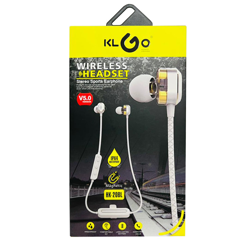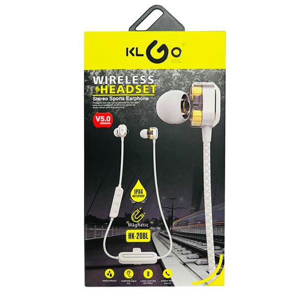 KLGO HK-20BL WATER PROOF IPX4 V5.0 BLUETOOTH NECK BAND - WHITE