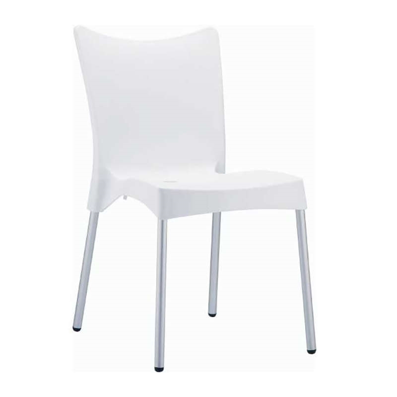 Καρέκλα JULIETTE του οίκου Siesta σε λευκό χρώμα,κατασκευασμένη από πολυπροπυλένιο ενισχυμένο με 20% fiber glass και πόδια από ανοδειωμένο αλουμίνιο Φ25mm,για απόλυτη αντοχή στον χρόνο.Κατάλληλη για εσωτερική και εξωτερική χρήση,στοιβαζόμενη σε πολλά χρώματα,ιδανική για επαγγελματική χρήση.