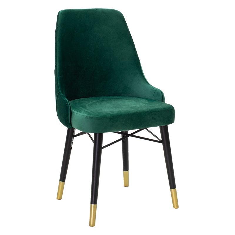 Καρέκλα Evadne pakoworld βελούδο σκούρο πράσινο-μαύρο χρυσό πόδι