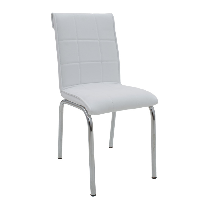 Καρέκλα Violeta pakoworld PU λευκό-πόδι χρωμίου Η καρέκλα Violeta είναι εδώ για να σας χαρίσει στιγμές άνεσης και εργονομίας. Λιτά αλλά παράλληλα εντυπωσιακά σχεδιασμένη, είναι επενδεδυμένη με τεχόδερμα που δίνει την αίσθηση της πολυτέλειας και μπορεί να ταιριάξει σε οποιοδήποτε στυλ διακόσμησης. Τεχνικά χαρακτηριστικά: Σταθερός σκελετός από μέταλλο υψηλής ποιότητας με αντοχή στο βάρος, στη φθορά και στο χρόνο. Επένδυση έδρας και πλάτης με foam 4 εκ και τεχνόδερμα PU μεγάλης ανθεκτικότητας. Ο σχεδιασμός της πλάτης ακολουθεί την σπονδυλική στήλη, στηρίζοντας τη μέση. Οι καταλήξεις των ποδιών στήριξης διαθέτουν πλαστικά καλύμματα για την προστασία του πατώματος από ανεπιθύμητες φθορές. Προσφέρεται σε χρώμα λευκό Διάσταση προϊόντος: Μήκος: 40 εκ. Πλάτος: 48 εκ. Ύψος: 86 εκ. Ύψος έδρας: 46 εκ. Βάθος έδρας: 36 εκ Ύψος πλάτης: 44 εκ Παρατηρήσεις: Το προϊόν παραδίδεται σε εργοστασιακή συσκευασία Η χρωματική απόχρωση του προϊόντος ενδέχεται να διαφέρει ελαφρώς σε σχέση με την φωτογραφική απεικ