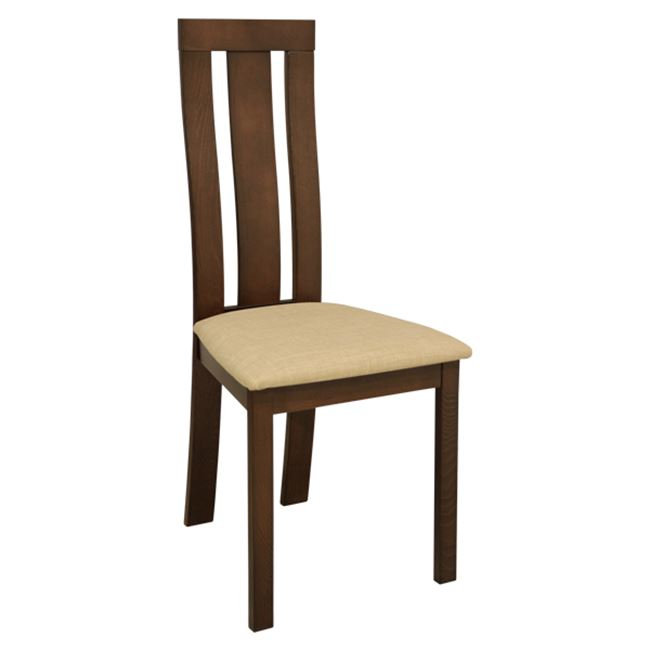 Καρέκλα τραπεζαρίας από μασίφ σκελετό σε καρυδί χρώμα. Η πλάτη της καρέκλας διαθέτει ένα επιπλέον τμήμα από ξύλο και κάθισμα με υφασμάτινη επένδυση σε μπεζ χρώμα. Αυτή η λεπτομέρεια κάνει την καρέκλα λιτή και μοντέρνα και αμέσως μεταμορφώνει την τραπεζαρία σας σε μια εξαιρετική γωνία του σπιτιού σας. Χρώμα: Καρυδί - Μπεζ Διαστάσεις: 46x50x101Υ εκ. Διαστάσεις καθίσματος: 46x42 εκ. Ύψος καθίσματος: 48 εκ. Διαστάσεις πλάτης: 48x56 εκ. ΠΡΟΣΟΧΗ: Το προϊόν διατίθεται αμοντάριστο σε πακέτο των δύο τεμαχίων και πωλείται ανά 2 τμχ.