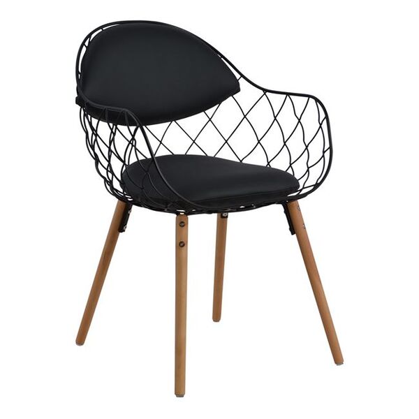 Ανάλογα με την διακόσμηση του σπιτιού σας, μπορείτε να βρείτε τα κατάλληλα έπιπλα που θα συνθέσουν μία όμορφη και μοντέρνα τραπεζαρία. Η πολυθρόνα MELIA είναι μεταλλικής κατασκευής, με μαξιλάρια από μαύρο PU και πόδια από ξύλο. Είναι από τις καρέκλες εκείνες που έχει το βιομηχανικό χαρακτήρα και έχει τον τρόπο να συνδυάζει το επιμελώς ατημέλητο styling, με το μοντέρνο, με μια ιδιαίτερη αισθητική. Απόχρωση: Μαύρο Διαστάσεις: 54,5x59x80 εκ. Διαστάσεις καθίσματος: 41x41 εκ. Ύψος καθίσματος: 45,5 εκ. Ύψος μπράτσου: 63 εκ. ΠΡΟΣΟΧΗ: Το προϊόν διατίθεται αμοντάριστο σε πακέτο