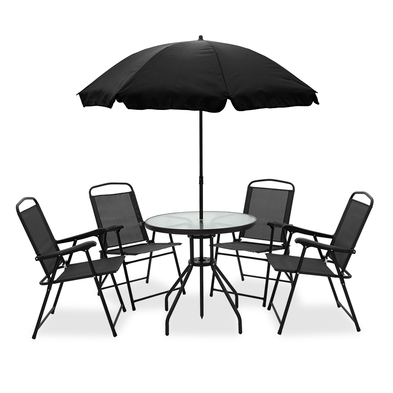 Tραπεζαρία κήπου Kamelia pakoworld σετ 6τμχ μέταλλο-textilene μαύρο