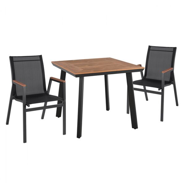 Σετ τραπεζαρίας 2 θέσεων. ΤΟ ΣΕΤ ΠΕΡΙΛΑΜΒΑΝΕΙ Ένα τραπέζι τραπεζαρίας με επιφάνεια Polywood σε φυσική απόχρωση και σκελετό αλουμινίου σε γκρι χρώμα. Το Polywood είναι ένα υλικό που παράγεται από 100% ανακυκλώσιμη πλαστική ξυλεία και άλλων συνθετικών υλών σε πολύ υψηλές θερμοκρασίες. Έχει κατασκευαστεί για να αντέχει σε όλες τις καιρικές συνθήκες (ήλιο και βροχή) και δεν απαιτεί συντήρηση. Προσοχή , να αποφεύγεται η επαφή με καυτές επιφάνειες και τοξικά χημικά προιόντα καθώς υπάρχει κίνδυνος διάβρωσης του υλικού. Διαστάσεις τραπεζιού: 80x80x73 εκ. Δύο πολυθρόνες κατασκευασμένες από σκελετό αλουμινίου, επαγγελματικών προδιαγραφών με γρι σκελετό και κάθισμα από γκρι textilene. Η επιφάνεια των μπράτσων είναι από Polywood. Διαστάσεις: 53x67x86 εκ. Ύψος καθίσματος: 42,5 εκ. Ύψος μπράτσων: 61,5 εκ. Διαστάσεις καθίσματος: 45,5x44 εκ. Απόσταση ποδιών: 53x61 εκ.