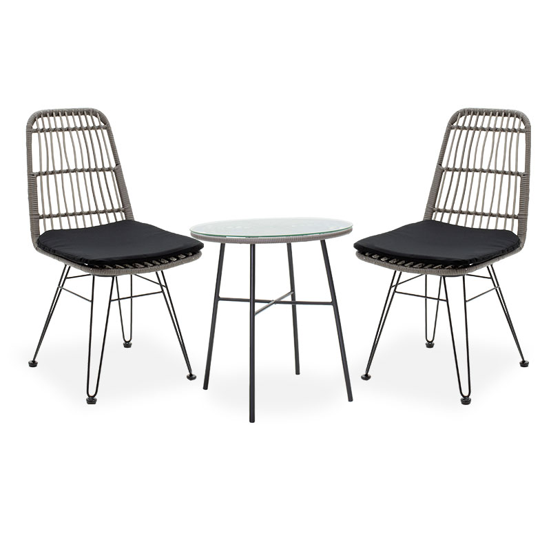 Τραπεζαρία κήπου Gaus-Naoki σετ 3τεμ pakoworld μέταλλο μαύρο--pe γκρι