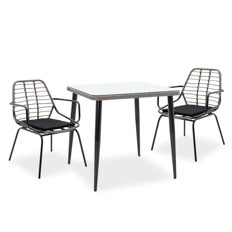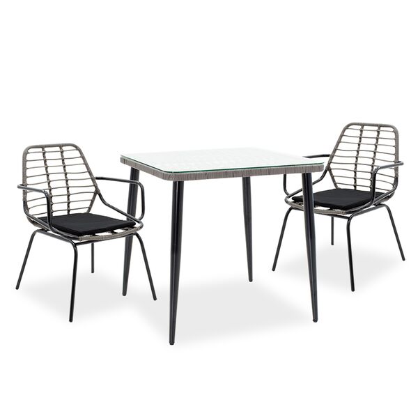Τραπεζαρία κήπου Naoki σετ 3τεμ pakoworld pe γκρι-μέταλλο μαύρο